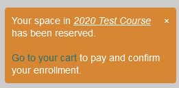 Important: The Enroll links do not display until the day and time that registration opens. If you do not see the Enroll link once registration opens, please refresh your browser. - Once you have finished selecting courses, click "Go to your cart" in the orange message box in the upper right of the screen (or the "Enrollments" or "Cart" link if the message box is no longer visible.)